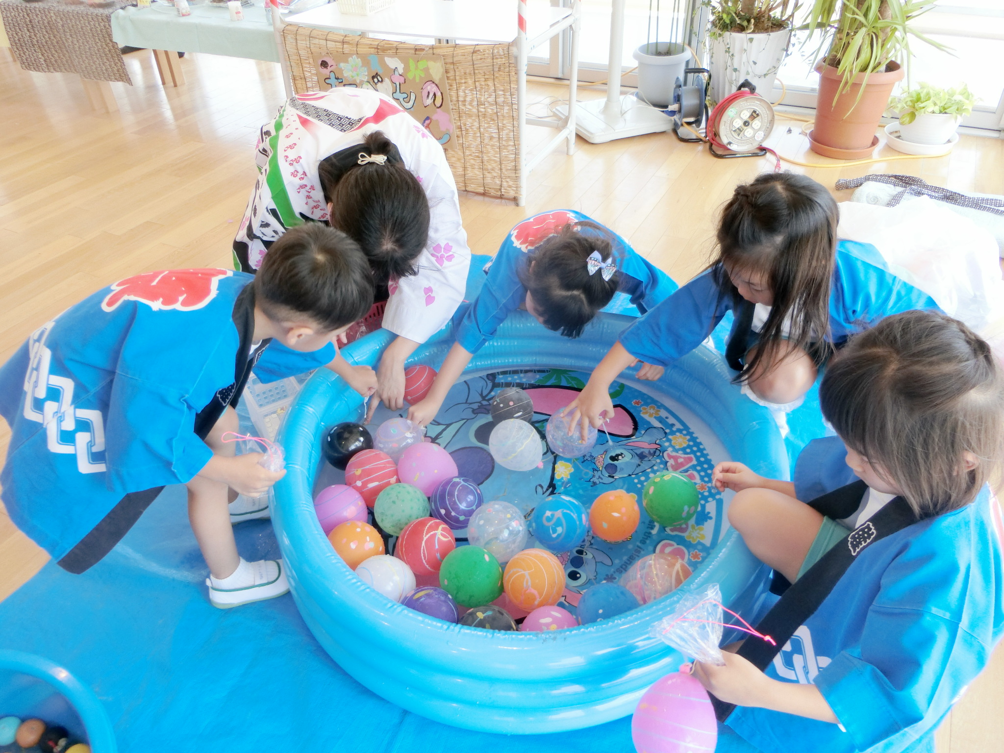 「金魚すくいとかどう?」「ヨーヨー釣り!」「焼きそば屋さん!」など、みんなからの意見をまとめ、話し合い、今回はスーパーボールすくい、ヨーヨー釣り、食べ物屋さんの3つに決まりました!